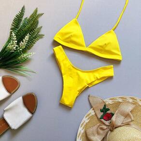Biquíni Liso Aviador Calcinha Asa Delta e Fio Duplo - Amarelo Claro - GG