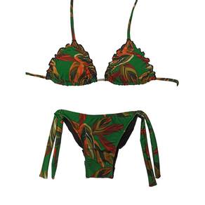 Biquíni ripple bojo removível calcinha levanta bumbum de amarrar - Verde - P