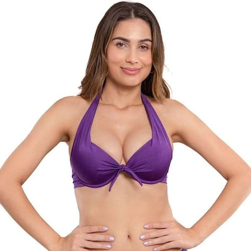 Biquíni Top Cor Neon Tecido Canelado Roxo Estiloso Confortável Meia Taça - Roxo - G