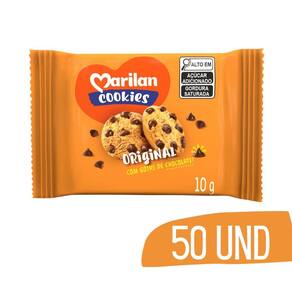 Peso por sachê: 10g Conteúdo da caixa: 100 unidades Tipo: Cookie com gotas de chocolate Embalado individualmente Fabricante: Marilan