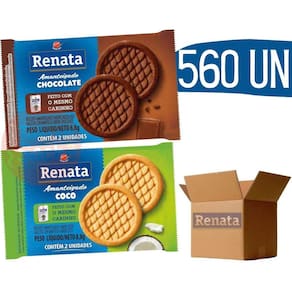 Os biscoitos renata são muitos saborosos, crocantes e irresistíveis. É um produto muito conhecido no mercado com garantia de qualidade renata.Ideal para servir em coffee breaks, cafés da manhã, quartos de hotel, clínicas e consultórios.Por ser embalado um a um é econômico e prático.280 saches biscoito amanteigados chocolate280 saches biscoito amanteigados coco com 2 biscoitos em cada sache Validade mínima de 8 meses