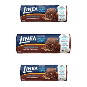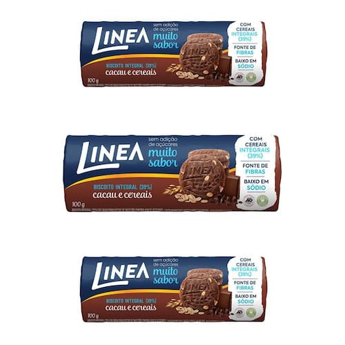 3 Pacotes de Biscoito Integral Linea Cacau e Cereais