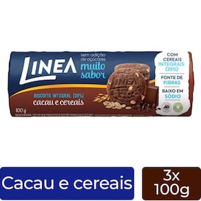 Conteudo: 3 Pacotes de Biscoito Integral Linea Cacau e Cereais Peso Liquido total: 360g.