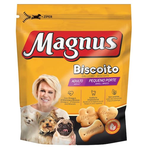 MAGNUS BISCOITO PEQUENO PORTE 1KG MAGNUS BISCOITO CÃES ADULTOS PEQUENO PORTE elaborado com ingredientes especialmente selecionados que proporciona um sabor inigualável, além de auxiliar na limpeza bucal, Pode ser oferecido ao seu cão como demonstração de carinho, em momentos de diversão ou como recompensa em treinamentos. Embalagem 1kg