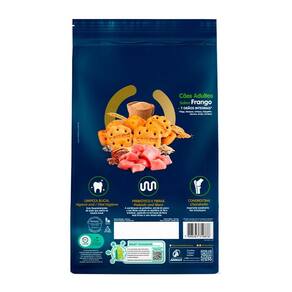 Farinha de trigo integral, farinha de trigo, farelo de trigo, grão de girassol, farinha de linhaça, gergelim preto, grão de quinoa, aveia, farinha integral de centeio, óleo de aves, proteína hidrolisada de frango, açúcar de cana-de-açúcar, parede celular de levedura, extrato de yucca 0,04% , hexametafosfato de sódio 0,1% , subproduto da extração da L-cistina, sulfato de condroitina 0,01% , cloreto de sódio, carbonato de cálcio, ácido propiônico, BHA Butilhidroxianisol e BHT Butilhidroxitolueno .