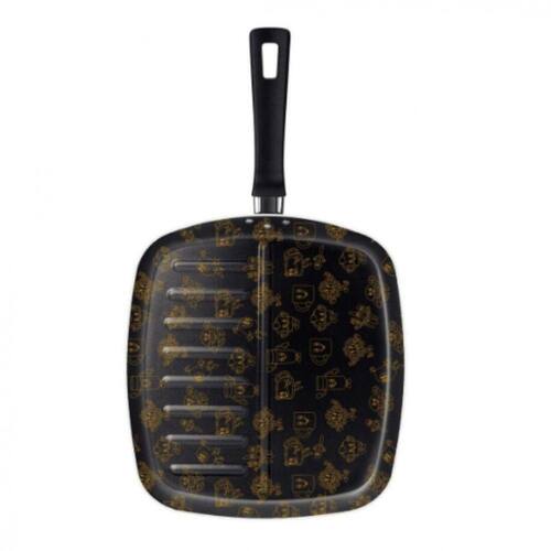 Com 26 centimetros de diametro, ela e feita de aluminio com revestimento interno antiaderente Starflon Max e revestimento externo siliconado estampado.