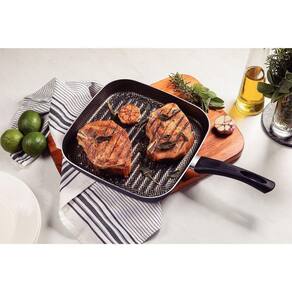 Com a bistequeira Tramontina Paris em alumínio com revestimento interno em antiaderente Starflon Max e externo de silicone preto 28 centímetros 2,3 litros você irá preparar deliciosos cortes de carnes e steaks para suas refeições! Produzida em alumínio com espessura de 2,5 milímetros e revestimento interno e externo de antiaderente Starflon Max, ela proporciona o cozimento rápido e uniforme dos alimentos, evita que eles grudem em sua superfície e é também superfácil de limpar. Seu cabo em baquelite, material antitérmico que não aquece e deixa seu manuseio muito mais confortável e seguro. Ela vai deixar seu dia a dia na cozinha muito mais prático!