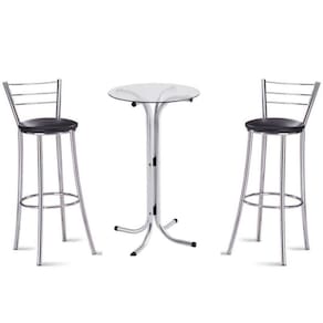 O conjunto Bistrô com banquetas GatMagazine além de bonito e charmoso traz harmonia para o seu ambiente!O Bistrô e a banqueta são feitos em aço cromado que traz mais resistência ao produto,O tampo do Bistrô é em vidro de 6mm com 60 centimetros de diamêtro.O produto é próprio para cozinhas,sala de jantar ou espaços gourmet.