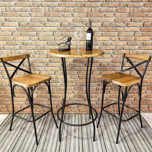 Bistrô com 2 banquetas de madeira - Lais - Metal Art - Marrom