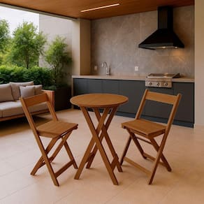 O Kit Bistrô Dobrável com 2 Banquetas em Madeira Pinus é a solução perfeita para quem quer unir charme e funcionalidade em ambientes compactos ou descontraídos. Com um design rústico e natural, é ideal para varandas, áreas gourmet, cozinhas , bares ou espaços comerciais.