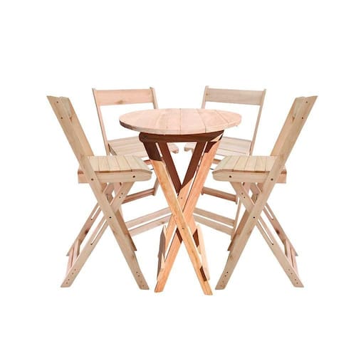 Kit Bistrô Pinus Dobrável com 4 Banquetas de Madeira