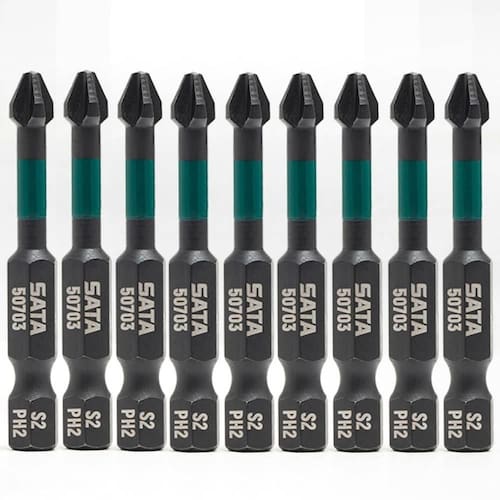 Produto: Bit phillips de impacto com encaixe de 1/4" 50 mm PH2 -ST59703 Marca: Sata Descrição: A Bit phillips de impacto com encaixe de 1/4" 50 mm PH2 -ST59603 da Sata é indispensável para trabalhos pesados que não são de aperto e desapertos de parafusos de maneira rápida. A ST59603 contém aço especial S2 e fabricados segundo os mais rigorosos padrões de qualidade e tratamento térmico, o Bit phillips de impacto oferece níveis superiores de resistência, resultando em uma vida útil significativamente prolongada. Além disso, a Bit phillips de impacto possui operação de aperto e desaperto de parafusos é extremamente ágil e precisa, proporcionando maior eficiência no trabalho. Características: • Tipo de ponta: Phillips; • Zona de torção contínua e pressa duradoura: Ideal para trabalhos pesados; • Alta produtividade; • Ponta magnética; • Fabricado em aço S2+ aço níquel + molibdênio + vanádio . Aço de alta qualidade, garantindo resistência e qualidade nos apertos e desesperos, ideais para ferramentas de impacto. especificações: Material: Aço níquel, molibdênio, vanádioTamanho: 50 mm Medida: PH2. Marca: Não Informado