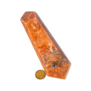 Nome da Pedra: Calcita Laranja Cor: Tons vibrantes de laranja, com nuances claras e suaves Lapidação: Vogel Bi-Terminado com 6 Facetas Medidas Aproximadas: 16 a 17cm Peso Aproximado: Média 420g Origem: Brasil