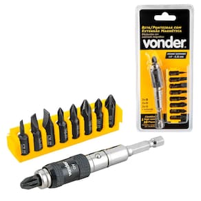 Bits e Extensão Magnética Articulada fabricados em aço S2, um material altamente resistente que garante maior durabilidade. A extensão magnética articulada proporciona praticidade ao trabalhar em locais de difícil acesso, facilitando a fixação e remoção de parafusos com precisão.