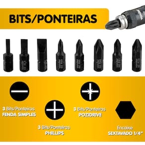 - Tipo do encaixe do bits: Sextavado - 1/4" (6,35 mm)