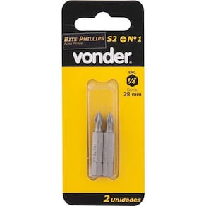 Conteúdo da embalagem1 Cartela com 2 bits/ponteiras fenda cruzada phillips Aplicações e dicas de usoIndicado para apertar e soltar parafusos com cabeça fenda cruzada phillips através de parafusadeiras e suportes manuais. Muito utilizado na área moveleira, automotiva, industrial, domicílios, entre outros.Destaques e diferenciaisFabricado em aço especial S2, que possui propriedades superiores em termos de resistência, aumentando a sua vida útil. Recebe ainda acabamento jateado, que proporciona ótima proteção contra oxidação. Facilita muito o trabalho de aperto e desaperto de parafusos, principalmente, quando utilizado em parafusadeiras. DETALHES TÉCNICOS Material do Bits ponteira: Aço S2 Especial Comprimento total do bits Phillips: 38 mm Número da ponta do bits Phillips: Nº2 - 1/4 Tipo do encaixe do bits: Sextavado - 1/4 Acabamento do Bits: Jateado Marca: Não Informado