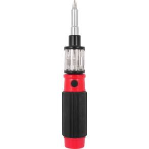 1 Jogo de bits/ponteiras. Acompanha: 1 cabo extensor, 1 bits fenda de 3/16 (4,76 mm), 1 bits SL 9/32 (7,14 mm), 2 bits phillips (PH1 e PH2) e 2 bits torx (T15 e T20).