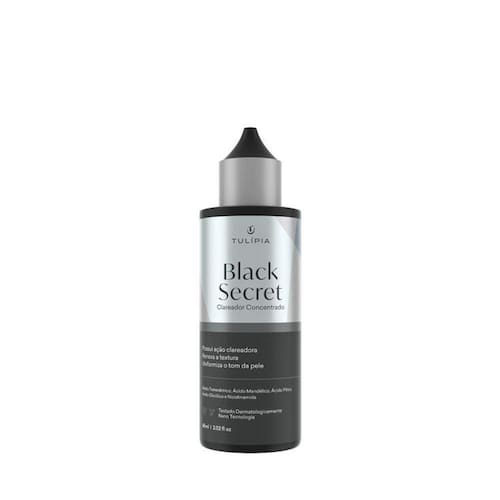 O clareador concentrado Black Secret é um blend de ácidos com ultra-ação clareadora. Ideal para cuidados pós-peeling e tratamento de manchas, é capaz de uniformizar e harmonizar o tom natural da pele, neutralizar manchas de melasma e atuar no controle da oleosidade com ação renovadora.Princípios AtivosÁcido Fítico Ácido Glicólico Ácido Kójico Ácido Mandélico Ácido Tranexâmico NicotinamidaClareador concentrado com blend de ácidosUltra-ação clareadoraCom blend de ácidos multifuncionais clareadores, como Ácido Kójico, Ácido Mandélico, Ácido e Ácido Glicólico, o Black Secret Clareador Concentrado possui ação despigmentante, capaz de harmonizar e equilibrar o tom da pele, devolvendo a tonalidade natural e uniforme.Ideal para tratamentos de manchas e pós peelingO Black Secret Clareador Concentrado, através de sua ação clareadora, é ideal para compor protocolos pós-peeling, sem percepção significativa de descamação ou vermelhidão, e tratamentos de clareamento de manchas como as causadas por melasma, acne, exposição ao sol e que surgem em decorrência da idade.Possui propriedades reparadoras Renova e rejuvenesce a peleO Black Secret Clareador Concentrado é capaz de potencializar diversos procedimentos anti-idade com tripla ação: antienvelhecimento, antioleosidade e antiacne.BenefíciosLivre de fragrâncias, corantes, parabenos, álcool, sulfatos e óleosPromove renovação da pelePotencializa procedimentos anti-idadePossui ação clareadoraRenova a textura natural da peleUniformiza e harmoniza os tons naturais da peleUm blend completo com ácidos multifuncionaisPossui tripla ação em: antienvelhecimento, antioleosidade e antiacne.Modo de usarCom a pele higienizada, aplique aproximadamente de 4 a 6 gotas do produto em toda a região a ser tratada. Aguarde a permeação do produto pelo tempo de ação de 10 a 15 minutos ou conforme a tolerância da pele antes de aplicar qualquer outro produto. Não remova. Em seguida, aplique o Hidrasol Fotoprotetor Facial FPS 30 ou 60. Marca: TULÍPIA COSMÉTICOS