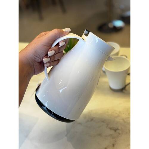 Essa garrafa térmica está na moda. ela é fabricada com materiais resistentes e duráveis: plástico e ampola de vidro. Possui um design que contribui com a decoração da mesa, é bastante funcional e conserva a temperatura ideal das bebidas quentes ou frias por até 24 horas.