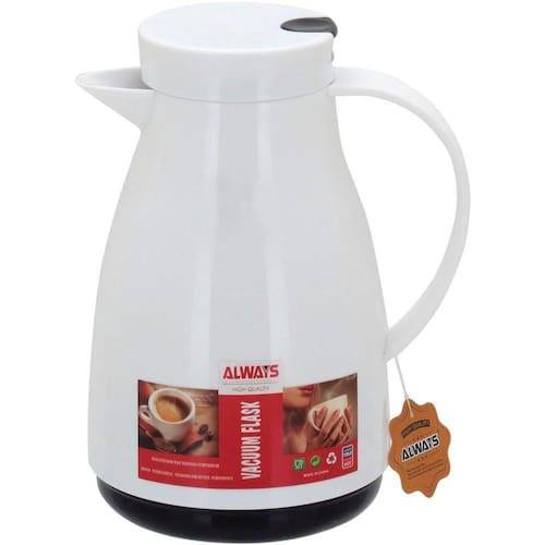Essa garrafa térmica está na moda. Ela é fabricada com materiais resistentes e duráveis: plástico e ampola de vidro. Possui um design que contribui com a decoração da mesa, é bastante funcional e conserva a temperatura ideal das bebidas quentes ou frias por até 24 horas.