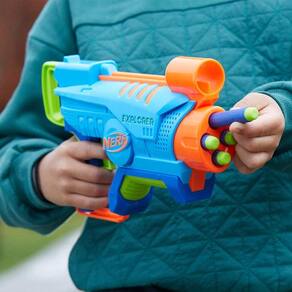 - FÁCIL DE SEGURAR, o Explorer Blaster foi projetado para caber confortavelmente em mãos pequenas, com seu design leve e fácil de pegar e transportar para crianças em jogos internos e externos.
