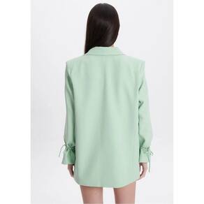 O blazer alongado é o queridinho da temporada. Nessa versão com amarrações nas mangas, ele confere um toque cool e despojado ao visual.