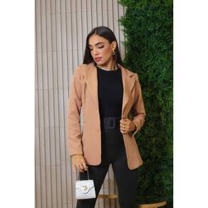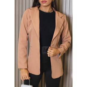 A peça faz parte da nossa linha de básicos e é confeccionada no modelo alongado oversized em tecido leve com forro, fechamento frontal com botão único e bolsos laterais falsos.