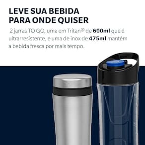 Na sua vida dinâmica, não podem faltar receitas saudáveis preparadas pelo Blender Inox Oster. Ele traz 2 opções de jarras To Go para você otimizar seu tempo e levar mais sabor para onde for: um copo grande e super-resistente em Tritan e outro em inox, que mantém a bebida fresca por mais tempo.