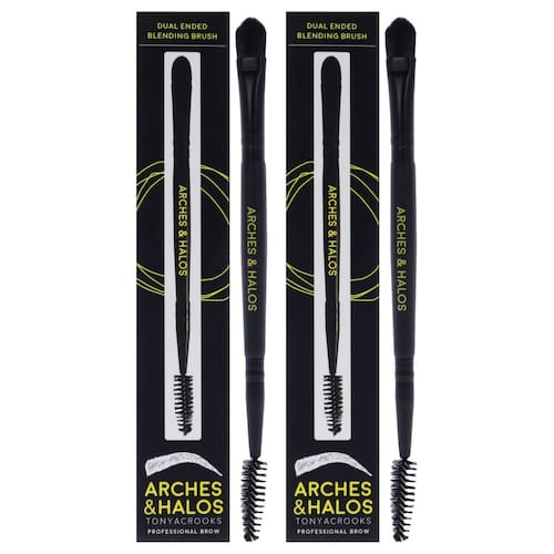 O pincel Arches and Halos Dual Ended Blending é feito com cerdas sintéticas e é ideal para misturar corretivo, iluminador ou qualquer imperfeição. É ótimo para misturar linhas fortes para dar um acabamento natural à sobrancelha.