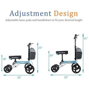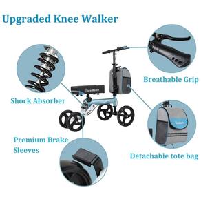 Knee Walker Function Ideal knee scooters for foot injuries adult surgery to the foot, ankle or lower leg as well as below the knee amputees.The BlessReach knee walker is an excellent alternative to crutches. Security StabilityThe scientific curved bottom frame can provide better support. The specially designed shock absorption function makes it more comfortable during use10front wheel and 8rear wheel,easy maneuvering. Ergonomic adjustable locking handbrake provide better safety. Comfortable Durable The knee walker is equipped with a contoured and padded knee rest, designed to cradle the leg for more comfort than crutches. And supports individuals up to 300 lb. Knee Walker with bagThe BlessReach knee walker with detachable canvas bag. The canvas bag has a double layer structure, which is easy to disassemble, portable, durable and beautiful. Easy to transport Both the Knee Walker rear wheel bracket and operating lever can be folded to reduce space and can be placed in the car for easy transportation Marca: Não Informado