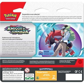 Pokémon de Treinadores vão com tudo para a batalha!Com profunda confiança e constante orientação, os Treinadores ajudam a trazer à tona o melhor de seus Pokémon. O vínculo que eles compartilham os empoderam para agirem como um só em batalha, elevando suas forças ao limite, inclusive como Pokémon ex! Monte sua equipe com Zoroark ex do N, Bellibolt ex da Kissera, Clefairy ex da Lílian, Zacian ex do Lupo e mais Pokémon de Treinadores, e descubra o implacável poder da amizade na expansão Escarlate e Violeta - Amigos de Jornada do Pokémon Estampas Ilustradas! O Blister Quadruplo contém um total de 25 unidades de cartas, todas no formato padrão de 63mm x 88mm, proporcionando uma experiência emocionante e repleta de estratégias no universo do Pokémon Estampas Ilustradas.