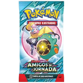 A expansão Escarlate e Violeta - Amigos de Jornada do Pokémon Estampas Ilustradas contém mais de 180 cartas. Cada jogador deve ter um baralho com 60 cartas de Pokémon para jogar. Expanda a sua coleção de cartas de Pokémon Estampas Ilustradas com pacotes de booster de 6 cartas.