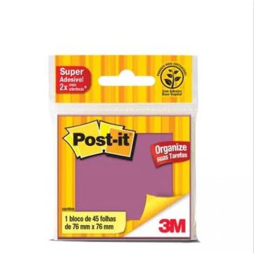 Bloco Adesivo 76X76 45Fls Roxo Post-It 654 - Hb004392922 Bloco de notas adesivo post-it roxo, medida 76mm x 76mm na versão de pacotes com 45 folhas. O post-it é uma das melhores maneiras de organizar e anotar seus recados na sua mesa de escritório, sala de aula, lembretes, eles garantem que você não esqueça de nenhum recado sem precisar riscar livros ou outros documentos. Ean: 7891040216093