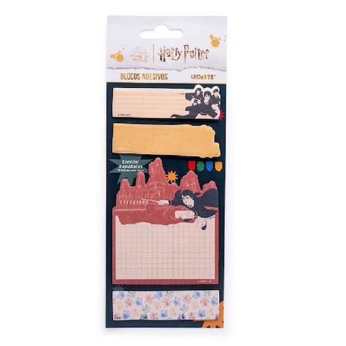 Traga a magia de Harry Potter para a sua organização com o Bloco Adesivo Harry Potter. Com designs inspirados na série, esses blocos adesivos são perfeitos para deixar suas anotações e lembretes encantados. O Bloco Adesivo Harry Potter Leoarte traz 4 blocos contendo 15 folhas, fabricado com papel e adesivo acrílico, os 4 blocos possuem medidas distintas: 7,8 cmX 7,6 cm, 7,6 cm X 2,0 cm, 7,6 cm X 2,3 cm e 7,6 cm X 2,3 cm. Adquira já e transforme sua rotina em um mundo mágico