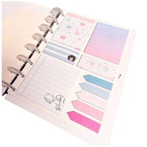 1 bloco 72x72mm com 25 folhas 2 blocos 77x58mm com 25 folhas cada 2 blocos 25x58mm com 25 folhas cada 5 marcadores de páginas de 44x12mm com 25 folhas cada