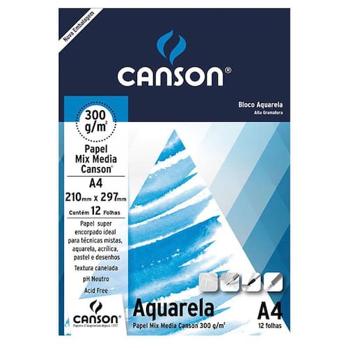 Especialmente indicado para aquarela, tinta acrílica e também para técnicas secas, como giz pastel, giz oleoso e lápis de cor.