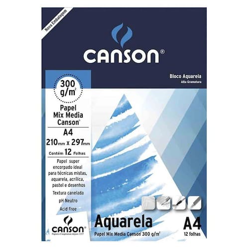 Bloco Aquarela Mix Media, é um papel artístico, dupla-face de alta gramatura e com dupla face de utilização; texturizada e lisa.