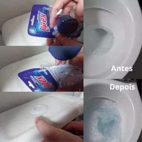 1. Abra a embalagem plástica. Remova a tampa da caixa acoplada. 2. Coloque o bloco dentro da caixa acoplada, longe da saída de água. 3. Recoloque a tampa e aguarde 10 minutos para acionar a descarga. 4. Substitua o bloco quando a água perder a coloração.