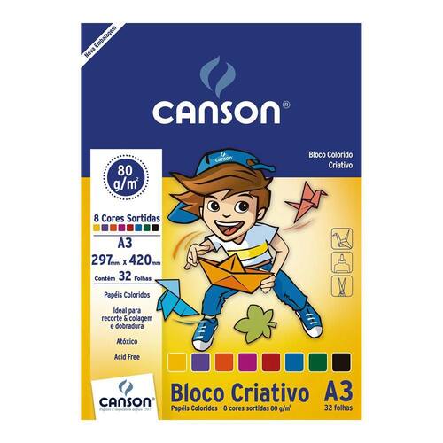O Bloco Criativo A3 Canson 80G 8 Cores 32 Folhas é perfeito para os amantes de arte e criação. Com uma gramatura de 80g, esse bloco possui 32 folhas no tamanho A3, com dimensões de 42x29,7 cm.