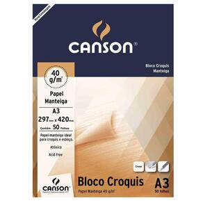 o bloco croquis canson é ideal para esboços e estudos de desenho, por isso é frequentemente utilizado nas escolas e cursos livres de artes. Com uma textura levemente granulada, o papel manteiga tem uma ótima aderência da técnica e dá vivacidade aos traços. Ao desenhar, sua superfície exige maior domínio do traçado, o que auxilia no desenvolvimento e precisão do traçado. sugestão de uso: carvão, grafite, lápis de cor,giz de cera etc..