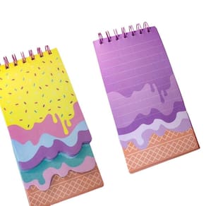 Detalhes do Produto: - Capa em Relevo 3D: Uma capa vibrante e detalhada que simula uma deliciosa sobremesa de sorvete, criando uma experiência tátil única. - Diversão e Funcionalidade: Além do design inovador, oferece amplo espaço para anotações, listas e desenhos.
