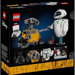O set Disney e Pixar WALL-E e EVE, é um kit de construção para adultos com 811 peças Inclui quatro personagens icônicos: WALL-E, EVE, MO e Hal, com peças móveis e detalhes autênticos do filme
