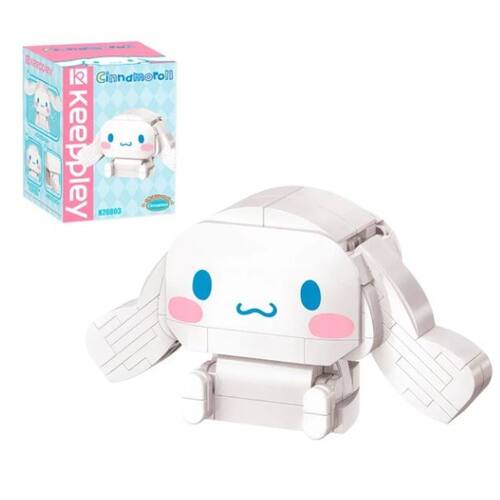 Personagem Cinnamoroll - Hello Kitty e Amigos Apresentamos o adorável Conjunto de Blocos de Construção Cinnamoroll da série Keepplay! Este brinquedo encantador é perfeito para fãs de todas as idades, trazendo à vida o icônico formato do Cinnamoroll. Com peças fáceis de encaixar e detalhes que reproduzem o fofo Cinnamoroll, é perfeito para estimular a criatividade e as habilidades motoras das crianças.Apresentada em um formato clássico com expressões adoráveis, ideal para estimular a imaginação. O conjunto pode ser montado livremente ou fixado na placa de base inclusa, permitindo que as crianças explorem sua criatividadeCom um design mini, é perfeito para crianças pequenas e colecionadores, facilitando o manuseio e a exibição.