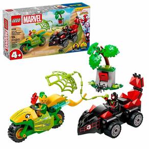 O kit de construção e brincadeira Spin and Electro Dinosaur Vehicle Chase foi projetado para desenvolver a confiança criativa das crianças, melhorar as habilidades de resolução de problemas e inspirar brincadeiras imaginativas sem fim .O conjunto recria a ação da temporada 'Dino-Webs' do programa de TV Spidey And His Amazing Friends.