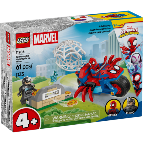 Coloque a ação de Super-heróis nas mãos das crianças com o Spidey na sua Mota contra Rhino (11206) Com minifiguras do Spidey e do Rhino e uma mota com forma de aranha, este set do Spidey é uma excelente forma de ajudaras crianças a desenvolver a criatividade Criado pa ra os futuros construtores, este set está cheio de detalhes para inspirar as crianças com brincadeiras imaginativas