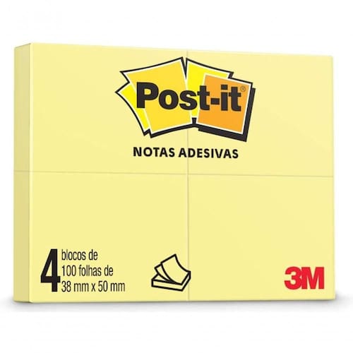 Bloco De Notas Adesivas Post-it 38x50 Mm 100 Folhas Amarelo - 4 Unidades - 3m Com um formato menor, os blocos adesivos Post-it são ideais para fazer pequenas anotações e lembretes, facilitando sua rotina e organização no dia a dia. São essenciais para você se organizar sem ocupar grande espaço na sua mesa de escritório ou na sala de aula. As notas adesivas Post-it são recicláveis e reposicionáveis. Medidas: 38 mm x 50 mm Cor: Amarelo Recicláveis Reposicionáveis Código: 001051 Dimensões aprox. da embalagem em cm: 1x7,6x10 Peso liq. Aproximado do produto na embalagem: 59g Referência do Modelo: HB004088165 Conteúdo da Embalagem: 04 Blocos de Nota Reposicionáveis Post-it - 38x50 mm Amarelo - 100 folhas 3M cada Composição/material: Papel Garantia: 90 dias contra defeitos de fabricação pelo fabricante Imagens meramente ilustrativas. As cores e tonalidades podem variar. Uso - Escolar Escritório Tipo de Papel - Sulfite Tipos de Blocos - Bloco Autoadesivo Bloco de Notas Marca: Não Informado Ean: 7891040012176