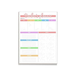 Este bloco de notas de planejamento semanal apresenta 40 páginas fáceis de escrever em papel destacável para que os professores possam ajudar a acompanhar os planos de aula, a agenda diária, as notas e as pessoas que precisam acompanhar. Presentear um professor com este lindo bloco de notas significa que ele receberá algo que poderá usar e apreciar todos os dias. Nossos blocos de notas para professores são impressos em papel premium que é fácil de escrever sem vazar tinta ou papel rasgado.