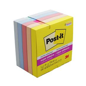Suas folhas são reposicionáveis, ou seja, possuem Super Adesivo Post-it, que permite que sejam retirados e recolocados, sem danificar papéis ou outras superfícies, sem deixar resíduos do adesivo e sem perder a eficiência na fixação.