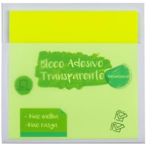 Bloco Adesivo Maxprint Clearnote Neon - Translucido na cor amarela - 76mm x 76mm - c50 fls Embalagem: UNIDADE--------------------- BIG BOOST ------------------------Bloco Adesivo Maxprint Transparente NeonÉ sempre bom ter um bloco adesivo por perto, não é mesmo? Evite o esquecimento, anotando lembretes e recados importantes. O bloco contém 50 folhas, é transparente, reposicionável e o melhor de tudo: não molha e nem rasga!! Ideal para te acompanhar no seu dia a dia. Especificações Técnicas : Código do produto: 134918 Cor: Amarelo Neon/ Rosa Neon Marca: Maxprint Quantidade: 1 Bloco com 50 Folhas Composição: Filme de polipropileno e adesivo acrílico reposicionável Medidas: 76 mm x 76 mm Peso: 0.020 Conteúdo da Embalagem: 1 Bloco Adesivo Transparente Amarelo Neon Maxprint ou Rosa Neon Maxprintcross docking: 0marca: Maxprintcor: Rosa