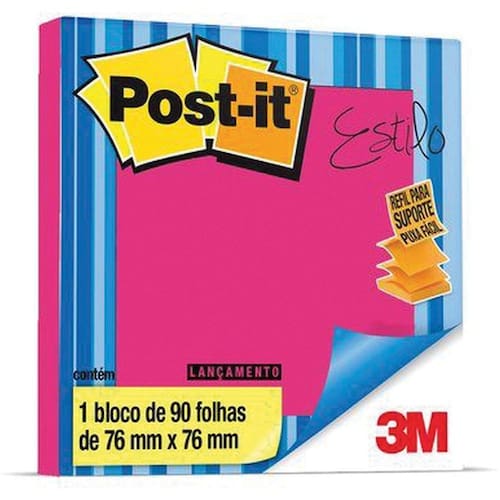 Bloco De Recado Post-It Pop up Refil R330 76 X76 Rosa Unidade: UNIDADE O bloco de notas Super Adesivas Post-it 76mm x 76mm refil para o sistema puxa fácil tem o formato parecido com uma sanfona e, quando utilizado junto ao porta notas adesivas Post-it, permite que você retire uma nota por vez com apenas uma mão.